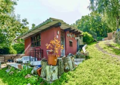 La propiedad también cuenta con tres cabañas de piedra adicionales, cada una situada en diferentes puntos de la parcela, una gran zona de barbacoa y una variedad de árboles frutales.